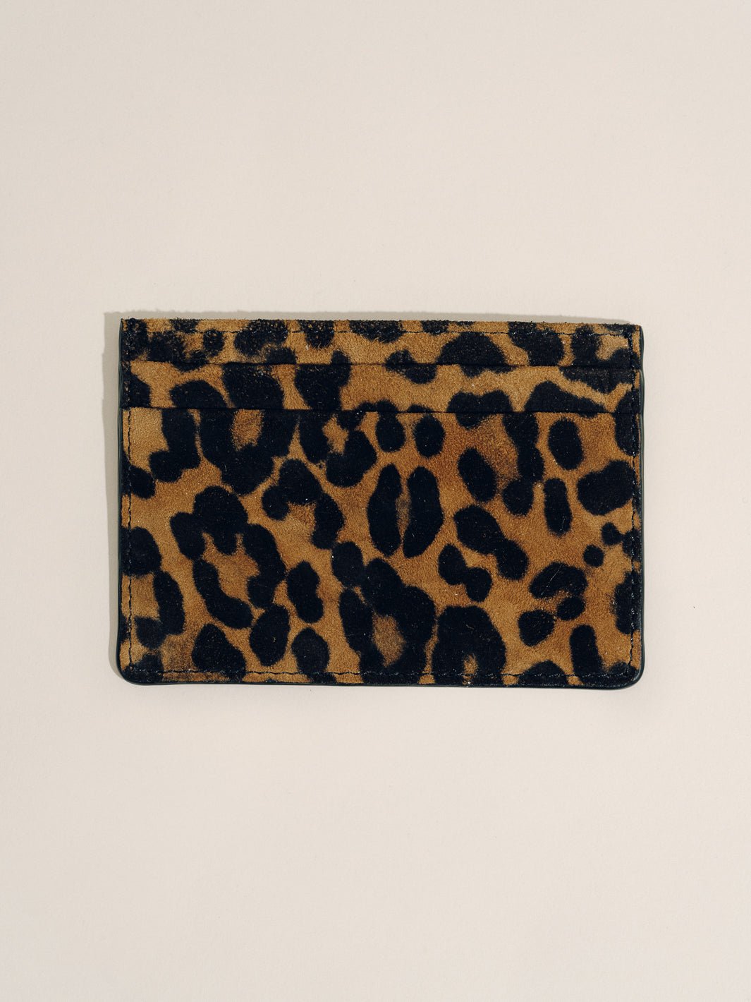 A refined essential—crafted in smooth leopard suede with contrast stitching, this slim card holder is designed for effortless organization. Discreet yet elevated, it slips easily into any bag or pocket, carrying only what matters most.