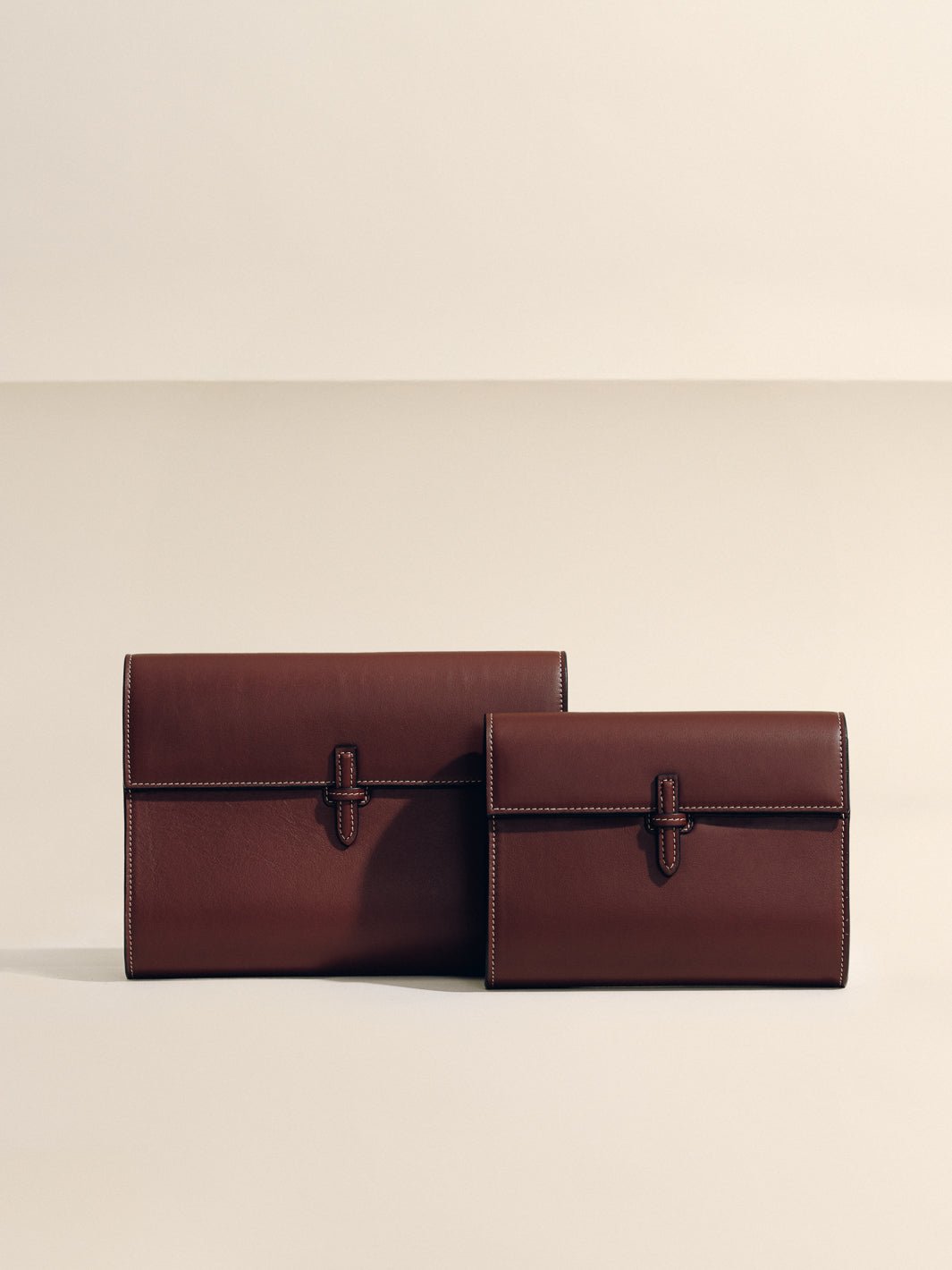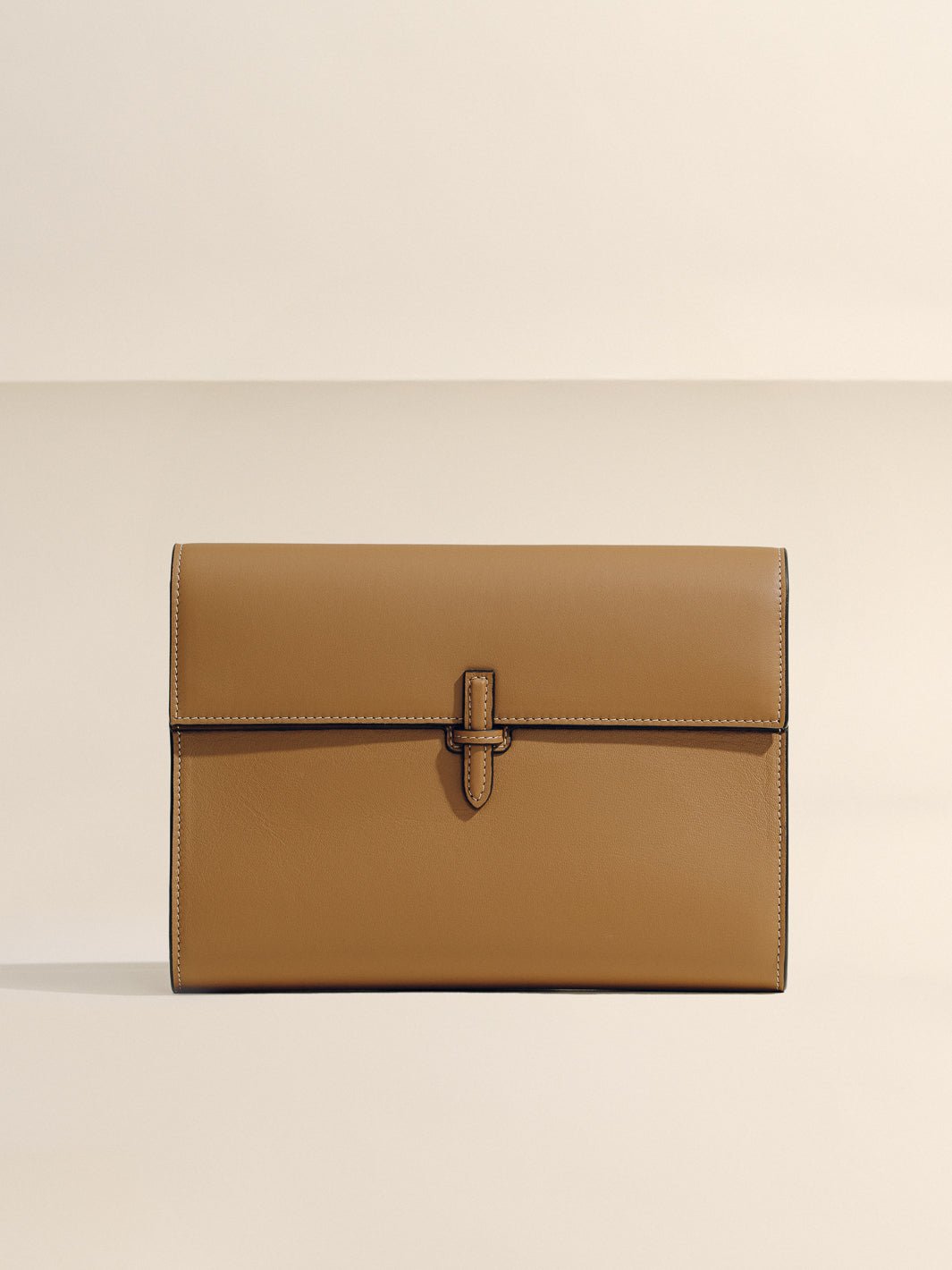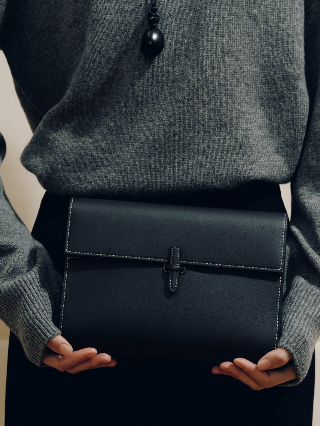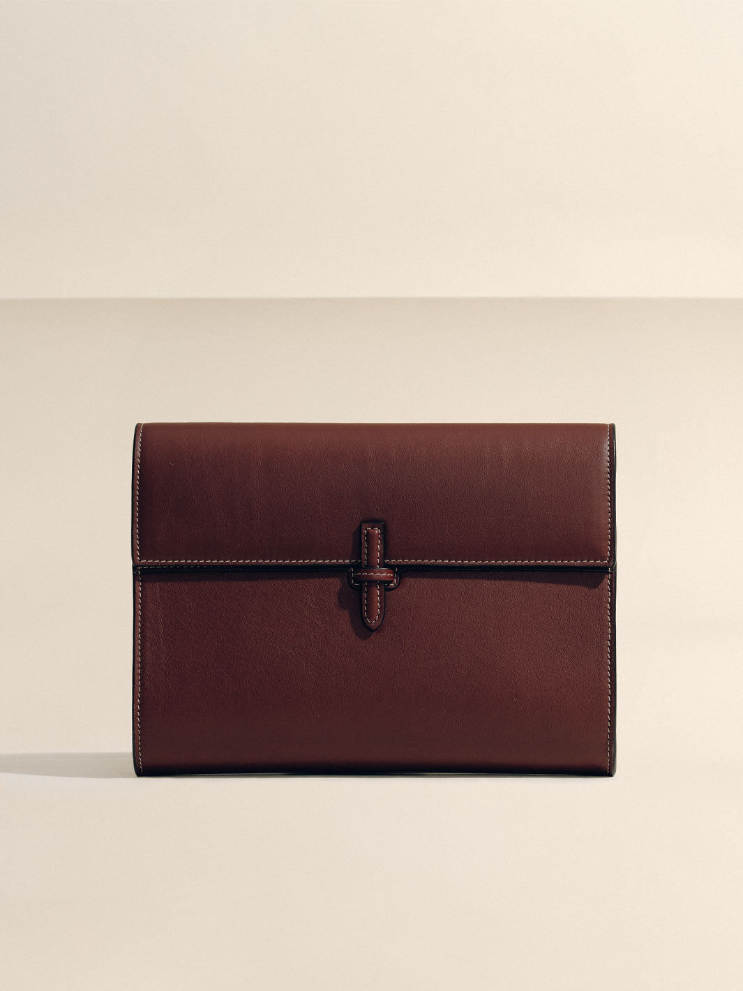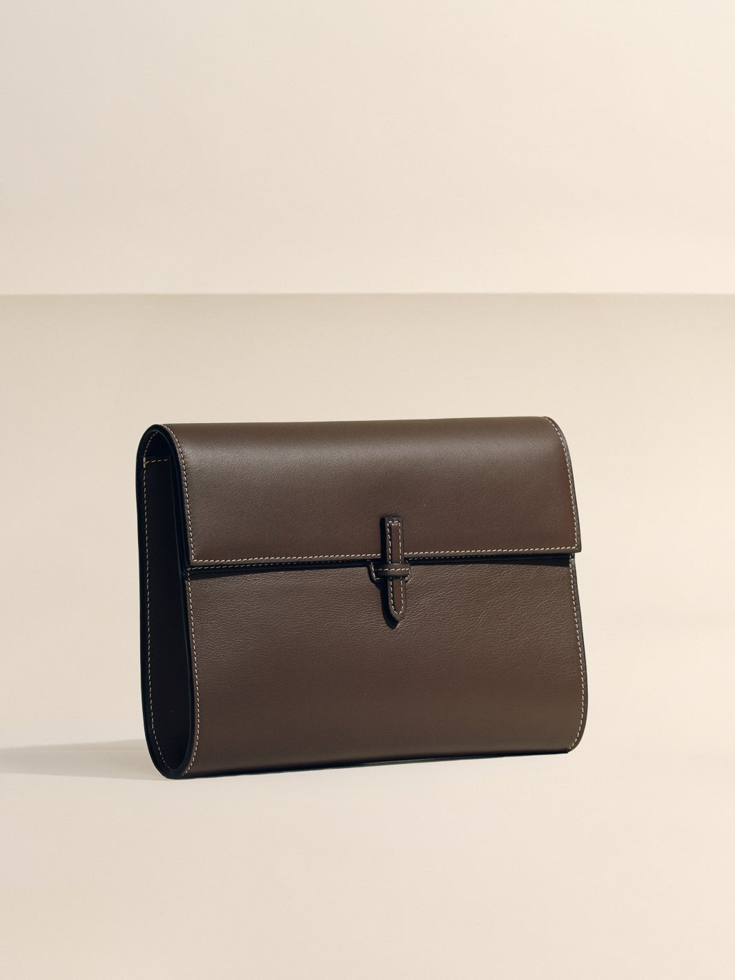 An evolution of our best-selling style, now reimagined in a larger silhouette. Crafted in supple leather and finished with our signature closure, this timeless piece offers more space while preserving its refined simplicity. Designed to be lightweight and versatile, it transitions seamlessly from day to evening, carried easily in hand or tucked under the arm. A modern update to a classic, balancing elegance with ease.