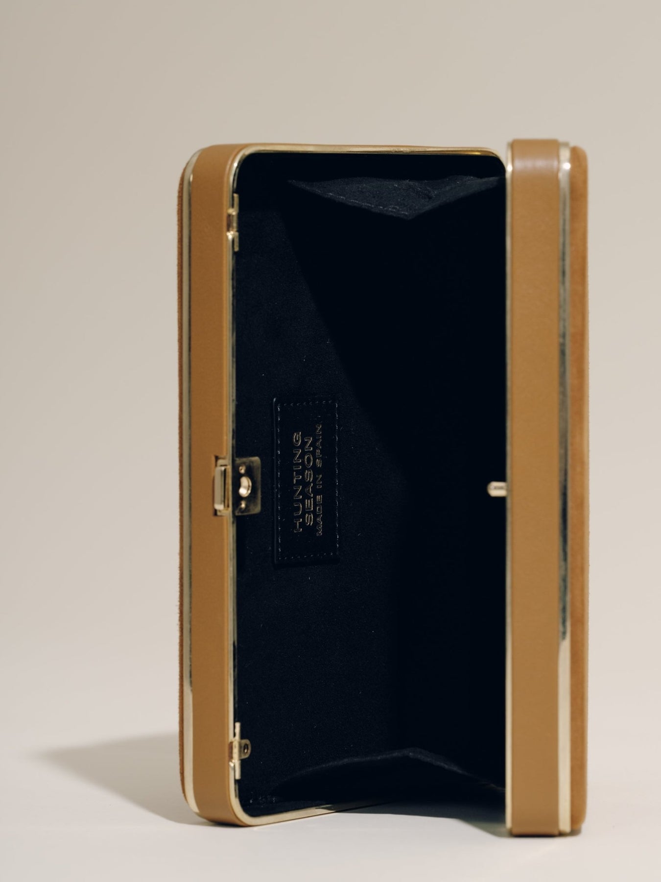 Hunting Season's compact cases are inspired by the brand's love for vintage cigarette cases, and are a study in sharp contrast. Architectural metal frames define the style's strong silhouettes, and highlight luxe materials like velvet and satin. The compact case is a perfect complement to evening looks. These cases have proven to be a timeless favorite, celebrated for their elegance and functionality.
