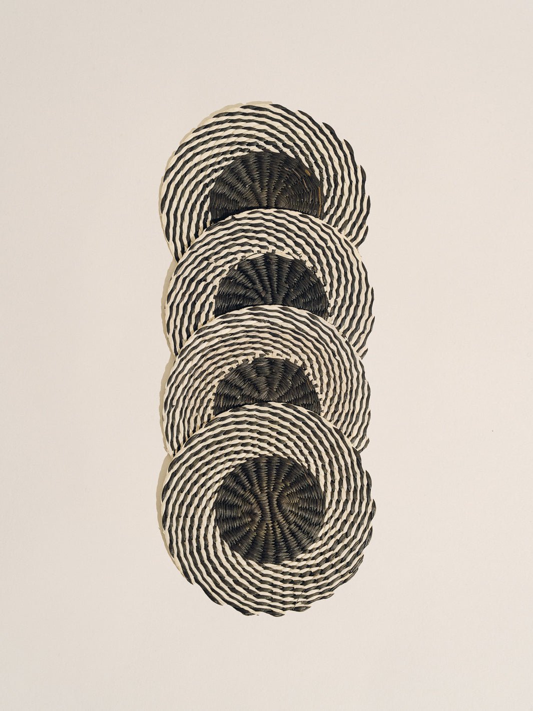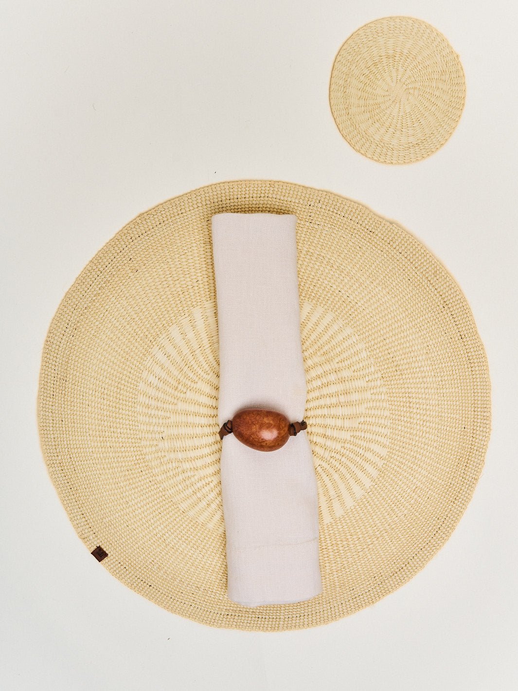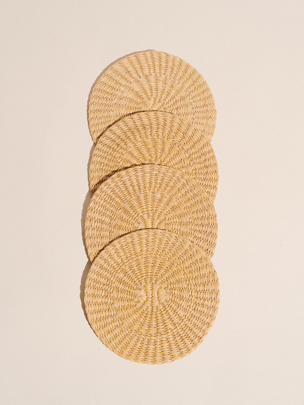 Our selection of homeware is thoughtfully curated to align with an earthy home aesthetic. This set of four coasters, crafted from iraca in a neutral beige shade, pairs effortlessly with nearly any tableware, adding a natural, understated elegance to your table.