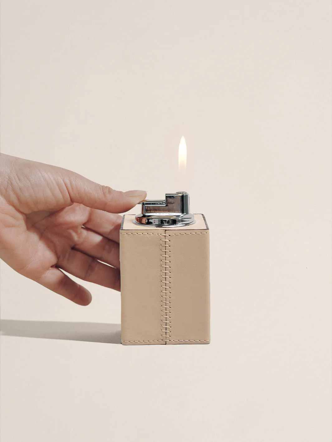 The ultimate coffee table accessory, Hunting Season's lighter is as practical as it is covetable. Crafted in nappa leather, the elegant design features a refillable lighter insert for ongoing use. Push to ignite once filled.