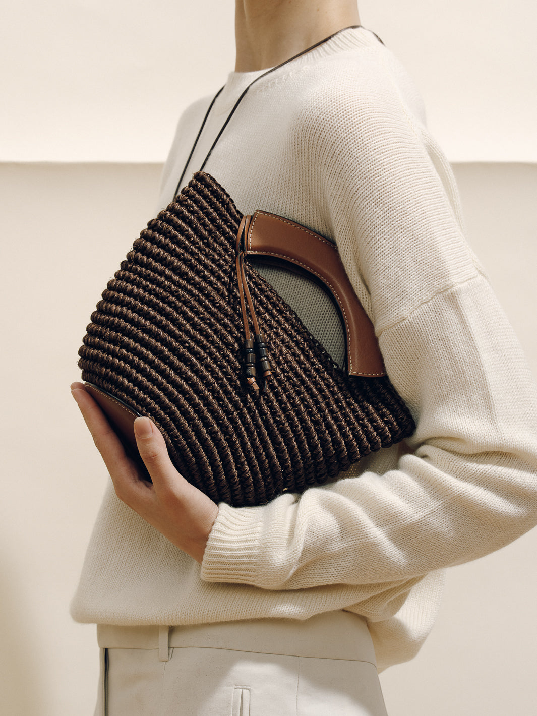 A new silhouette with an elegant, structural shape and endless styling potential. The Basket boasts rich, handwoven texture with thick, leather-trimmed handles and our signature tassel accent. Its soft construction makes it the perfect style to pack on your next weekend away, while a removable crossbody strap imbues this easy piece with added versatility.
