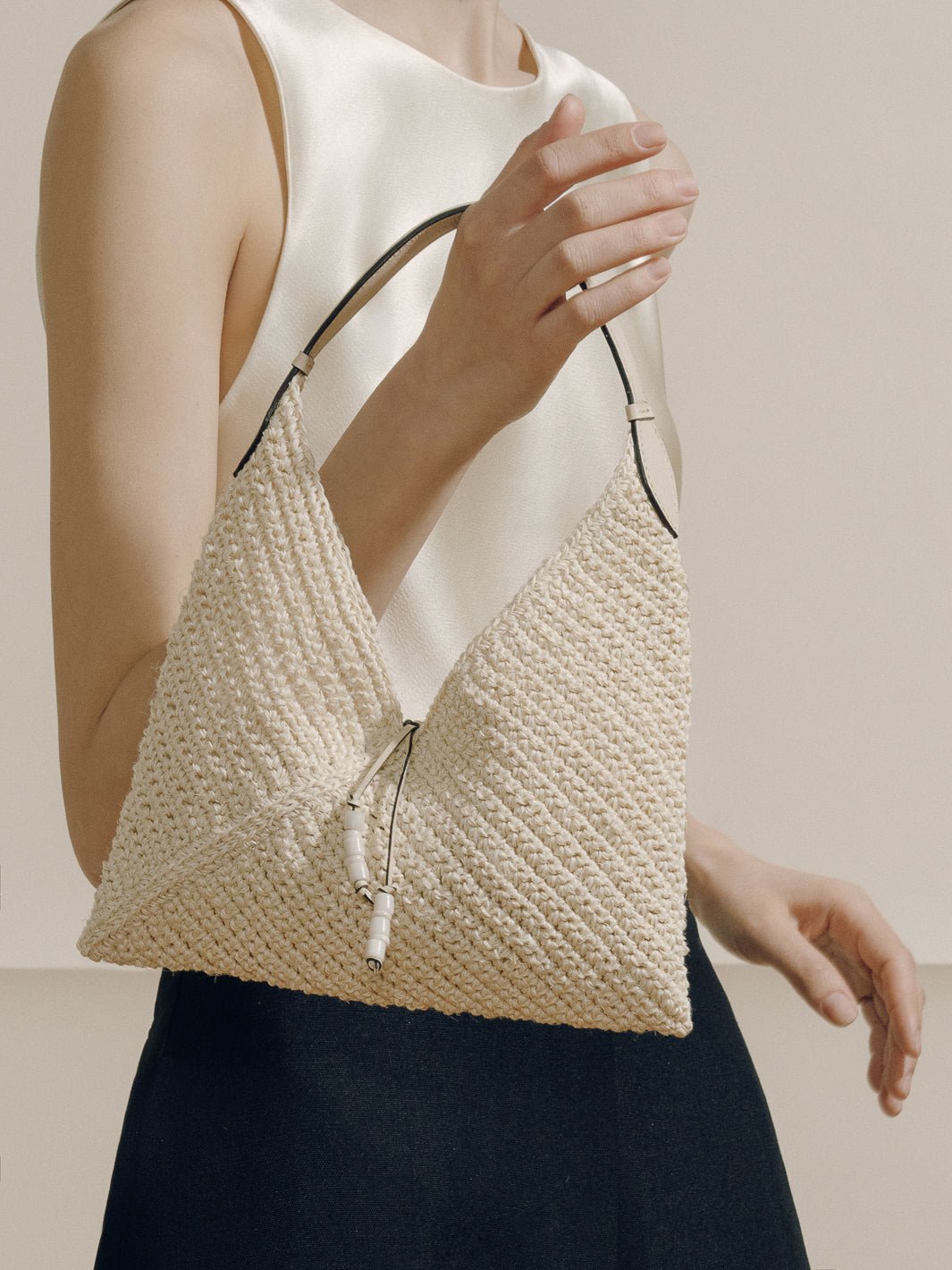 Inspired by the artful folds of its namesake, this lightweight woven bag lays delicately flat against the body, making it as graceful to wear as it is practical to carry.