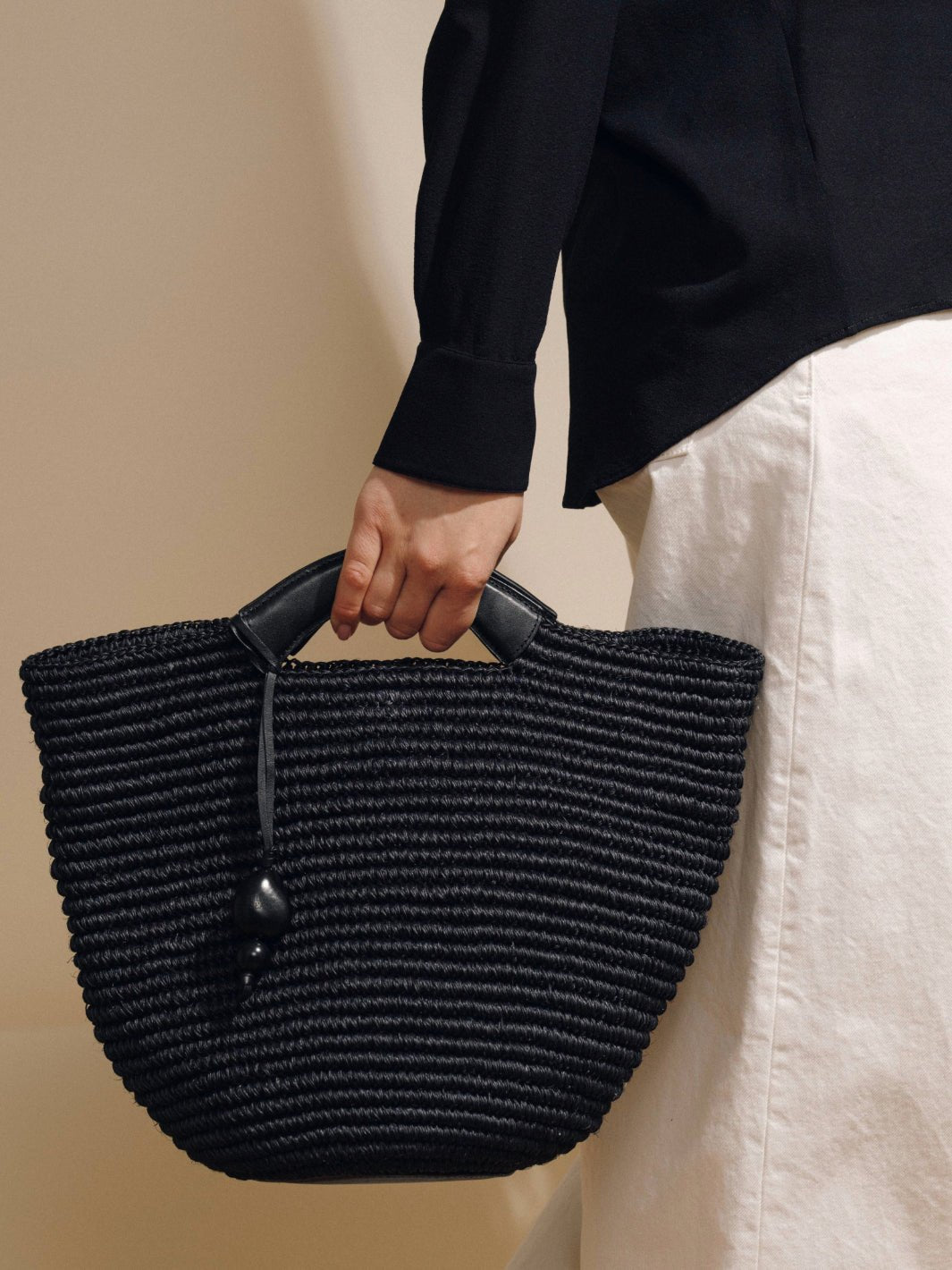 Handwoven from Fique leaves with Nappa Leather Trim.