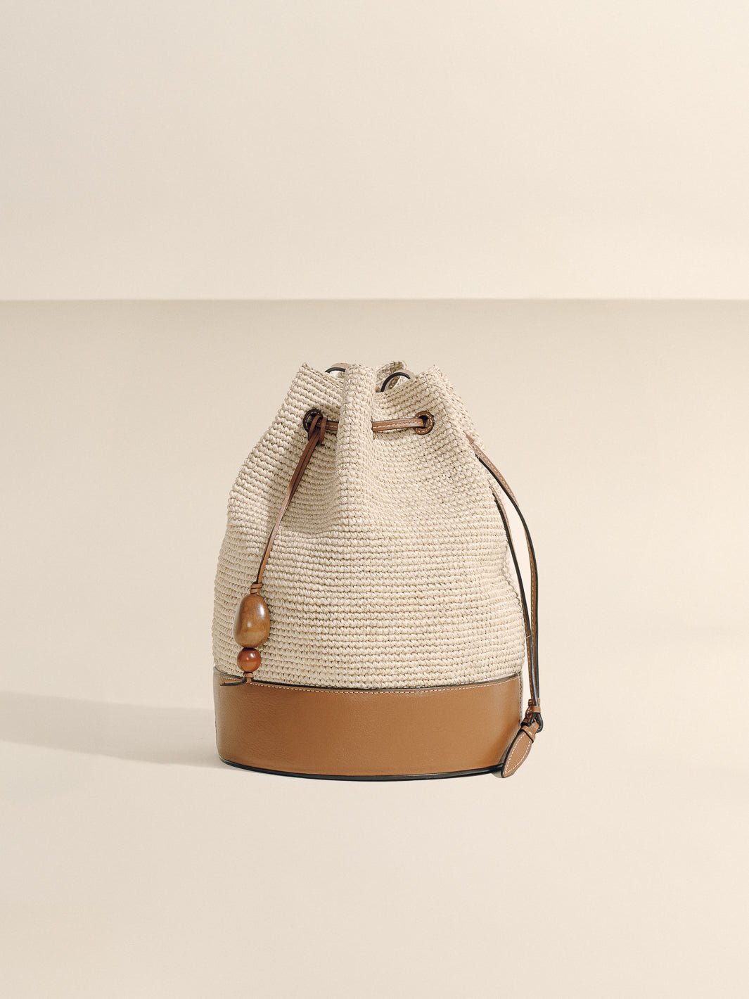 As pure in form as its organic materials, the Mochilla Bag offers an artful interpretation of an effortless, everyday silhouette. Crafted from woven platano and finished with sleek leather, this drawstring bag combines a modern mix of textures perfect for a range of occasions. A cluster of tagua seeds—native to Latin America—accent the tie with a nod to the natural world. Sized for a day on-the-go, its soft silhouette is designed without internal compartments for a relaxed shape that showcases its handwoven construction.