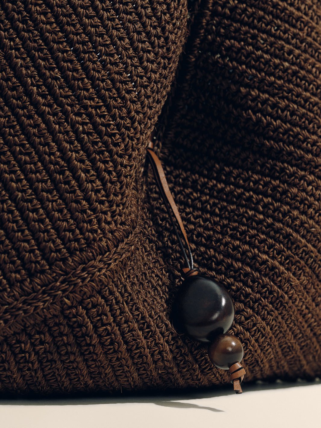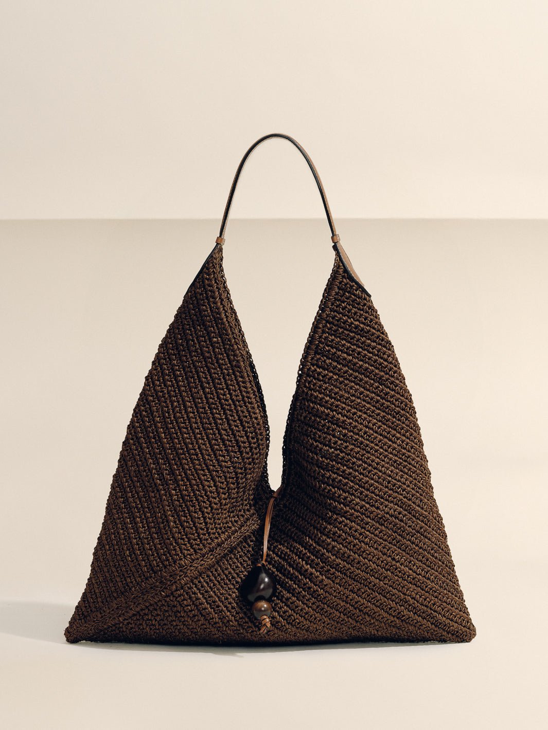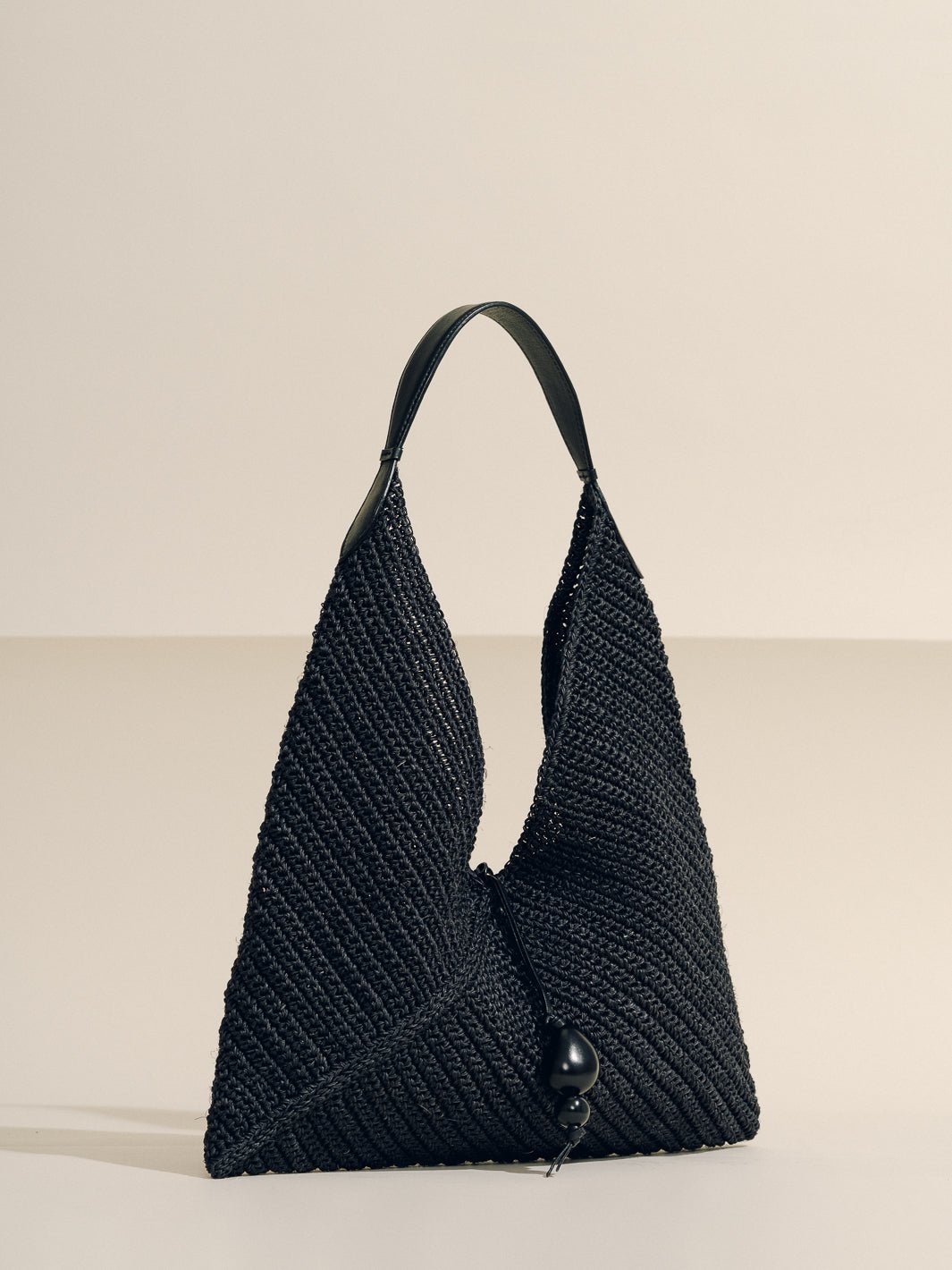 A delicate balance of form and function, its sculptural silhouette is complemented by a supple leather handle and a hand-carved tagua charm—an organic accent that nods to nature's quiet luxury. Perfectly packable, the Origami transitions seamlessly from beachside escapes to city strolls, embodying understated sophistication in every setting.