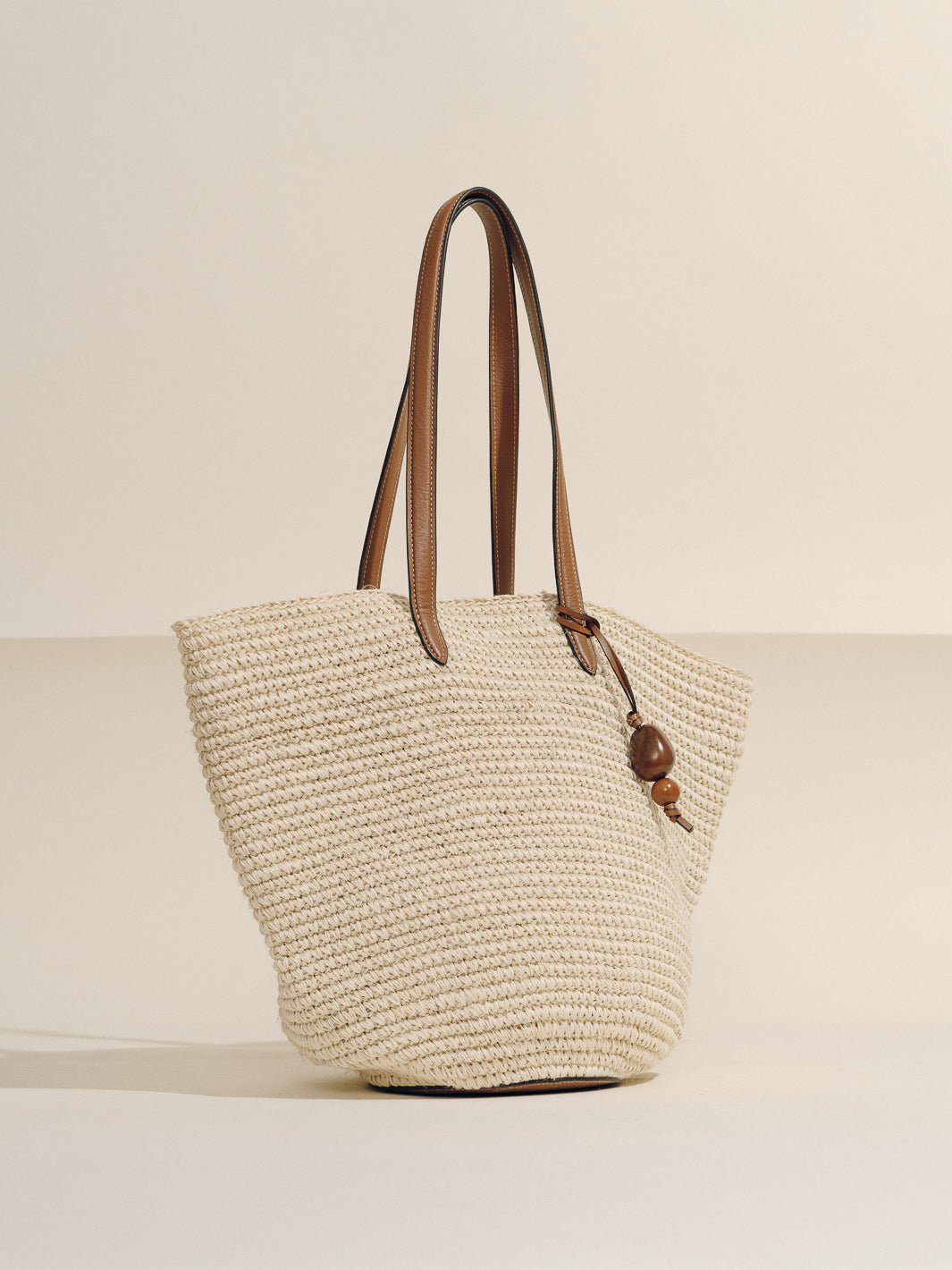 Effortlessly blending form and function, The Market Tote is crafted from handwoven natural fibers and elegantly trimmed in rich nappa leather for a refined finish. Designed for the modern woman on the move, it's lightweight, spacious, and effortlessly packable — perfect for everything from spontaneous getaways to daily errands. The supple leather handles promise lasting comfort, while the handcrafted tagua charm — carved from the seed of a Colombian palm and often called "vegetable ivory" — offers a tactile connection to the natural world. Each charm is a one-of-a-kind piece, echoing the beauty of organic forms and the artistry of tradition. Elevated yet easy, it's the kind of essential you'll reach for again and again....
